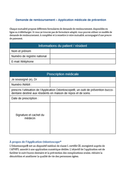 L’Odontoscope® est un dispositif médical de classe I, enregistré et validé auprès de l’AFMPS, destiné à la prévention et au suivi de la santé bucco-dentaire.