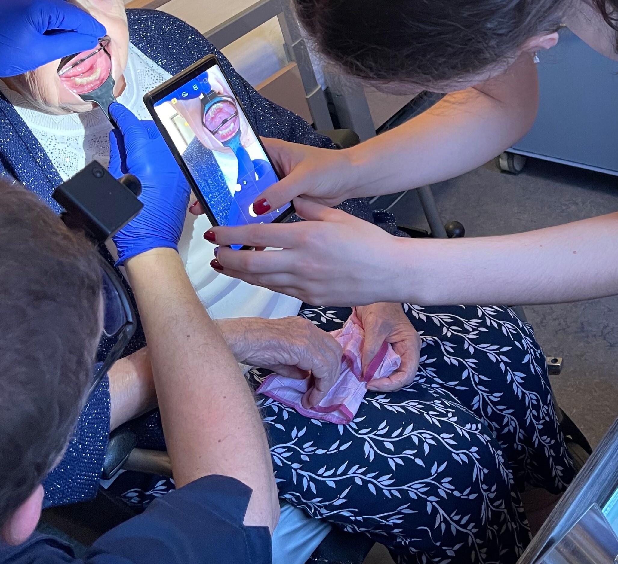 Dépistage bucco-dentaire de l’après-midi, par les référents sous supervision du dentiste. Les résidents consentants, seront examinés avec le système l’Odontoscope® ; le dispositif médical et l’application d’évaluation et de suivi.